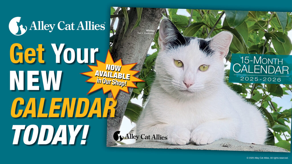 The 2025-2026 Alley Cat Allies calendar is now available in our shop! Get your calendars today.