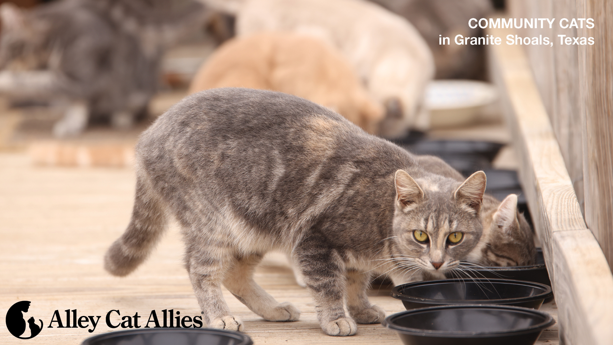 Our Community Cat Food Bank was not our first effort in Granite Shoals. In 2023, when community cats and Trap-Neuter-Return (TNR) were threatened in the city, Alley Cat Allies took swift action to defend them. Granite Shoals advocates, organizations, and law enforcement stood with us in support of their cat community members.