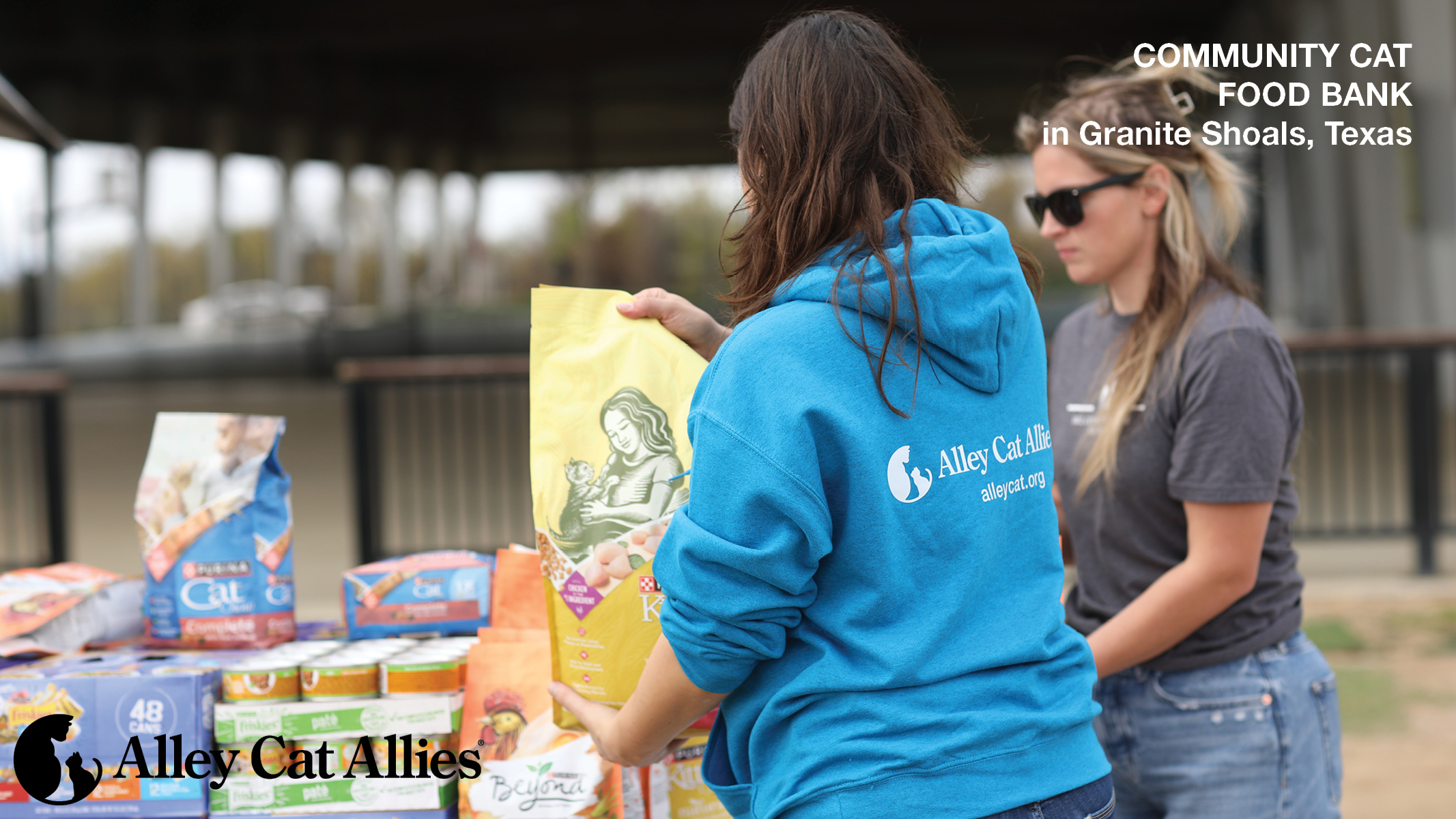 Even over the holidays, Alley Cat Allies is on the ground protecting cats! On December 22, we held a no-cost Community Cat Food Bank in collaboration with Hill Country Humane Society in Granite Shoals, Texas. In just a couple of hours, we provided food for more than 250 community cats and kittens!