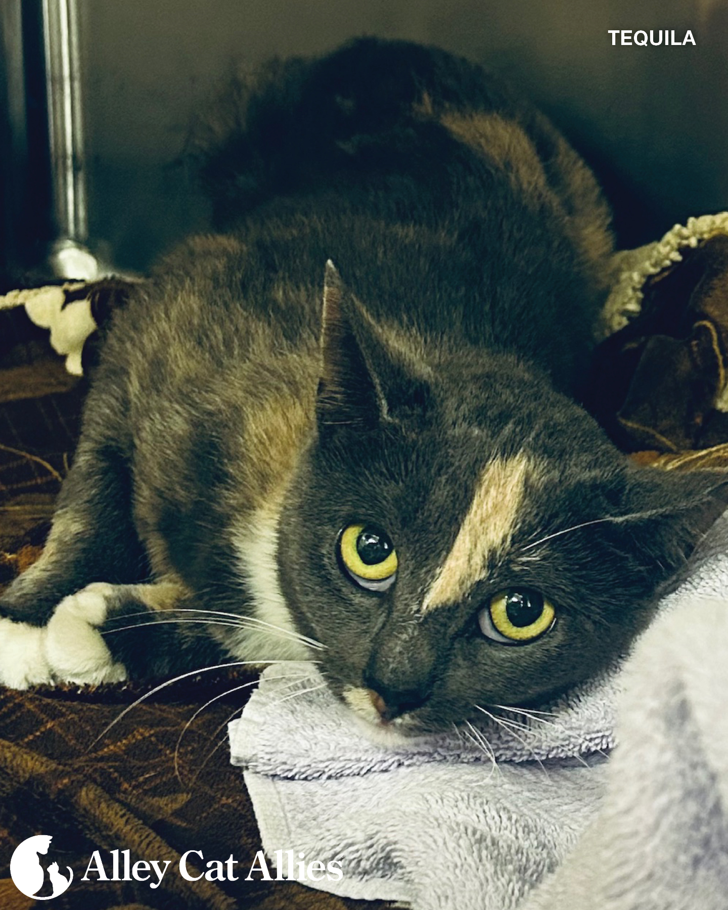 Each week in the TNR collaboration, community cats like Tequila are spayed or neutered, vaccinated, eartipped (the universal sign of a cat sterilized through a TNR program), microchipped, and given any other needed medical care, including antibiotic injections. A mother to several kittens, Tequila will be returned to her outdoor home to thrive free from the stresses of pregnancy. Her kittens, Cucumber and Pickle, will be adopted into homes of their own.