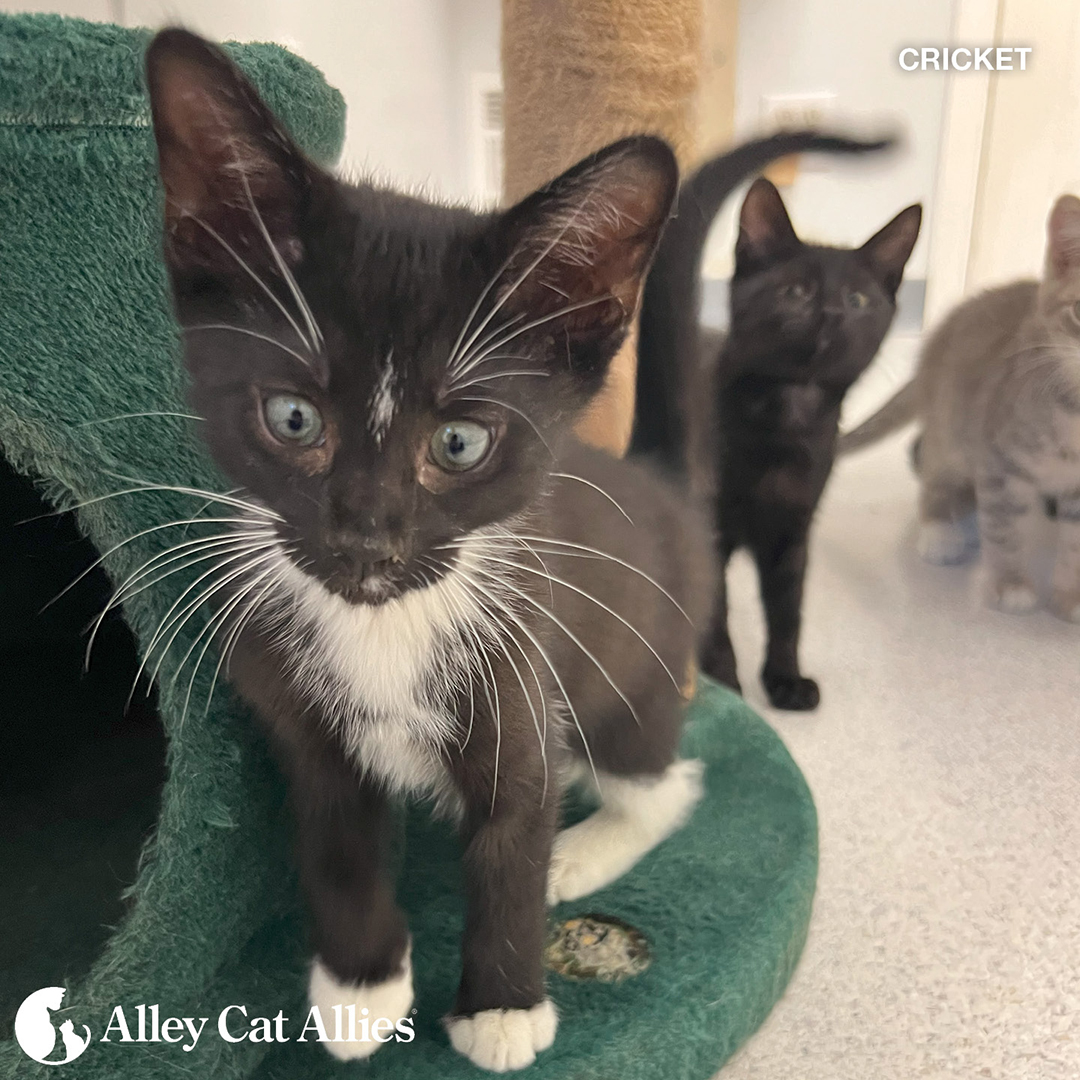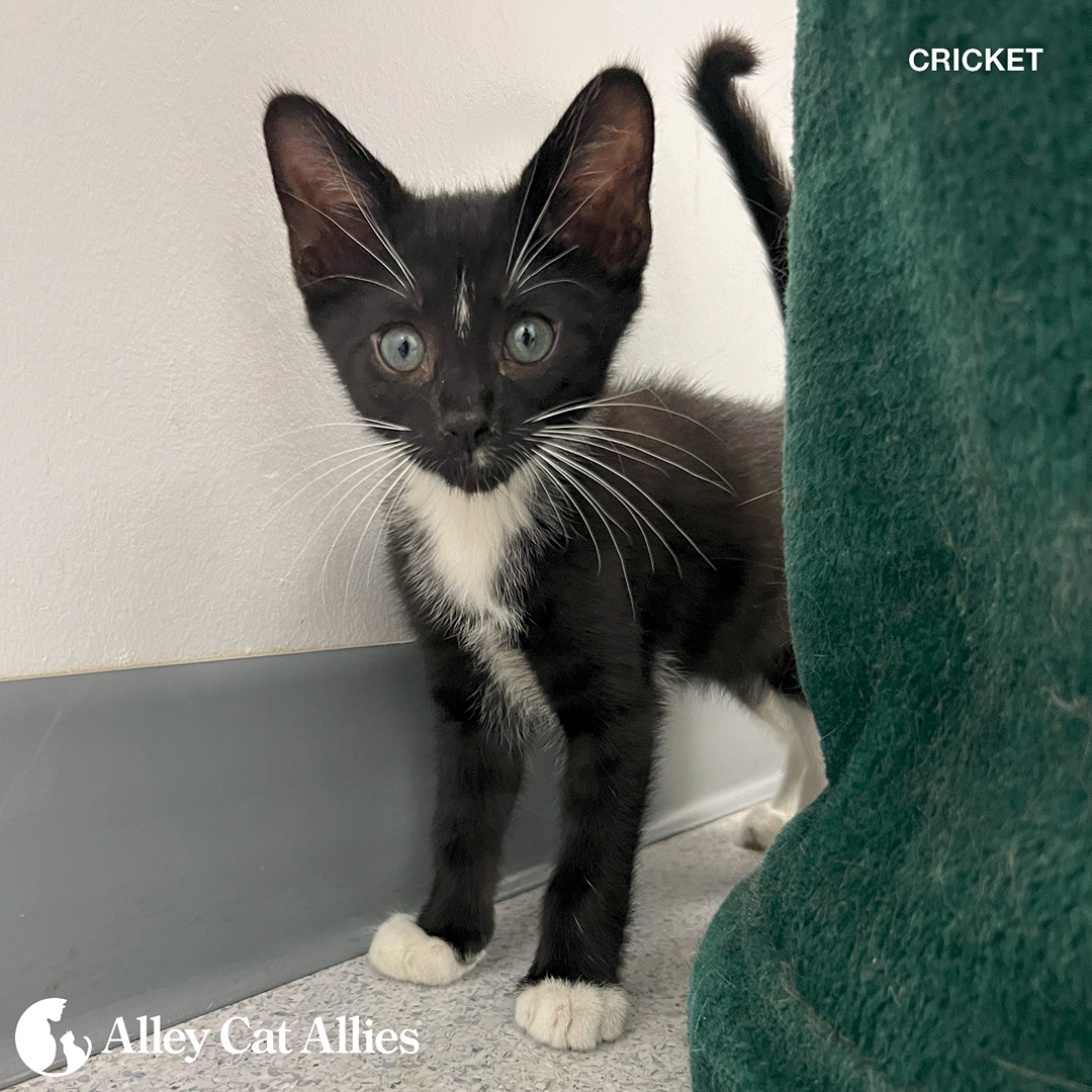 We introduced you to Cricket and his siblings earlier this month—all are receiving veterinary treatment through Alley Cat Allies grants for access to care. We’re happy to share that this tiny tuxedo is getting more playful by the day.