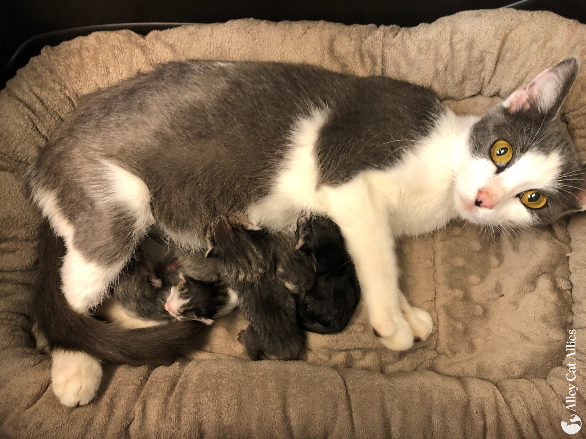 Alley Cat Allies’ latest veterinary grant in Oklahoma is providing critical veterinary care for kittens in need–including new mom Miso and her kittens Bisque, Butternut, Chowder, Noodle, and Bouillon!
