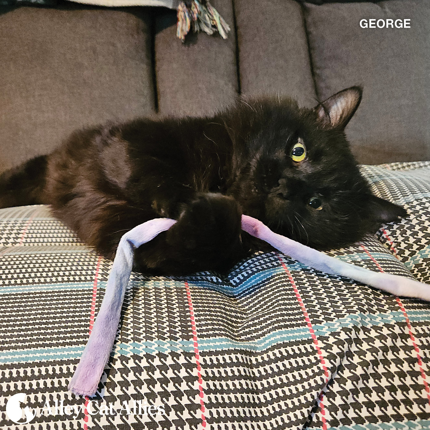 While it’s heartwarming to know that George is doing well, the perpetrator of his attack is still out there. Alley Cat Allies is offering a $10,000 reward for information that leads to an arrest and conviction. Learn more.