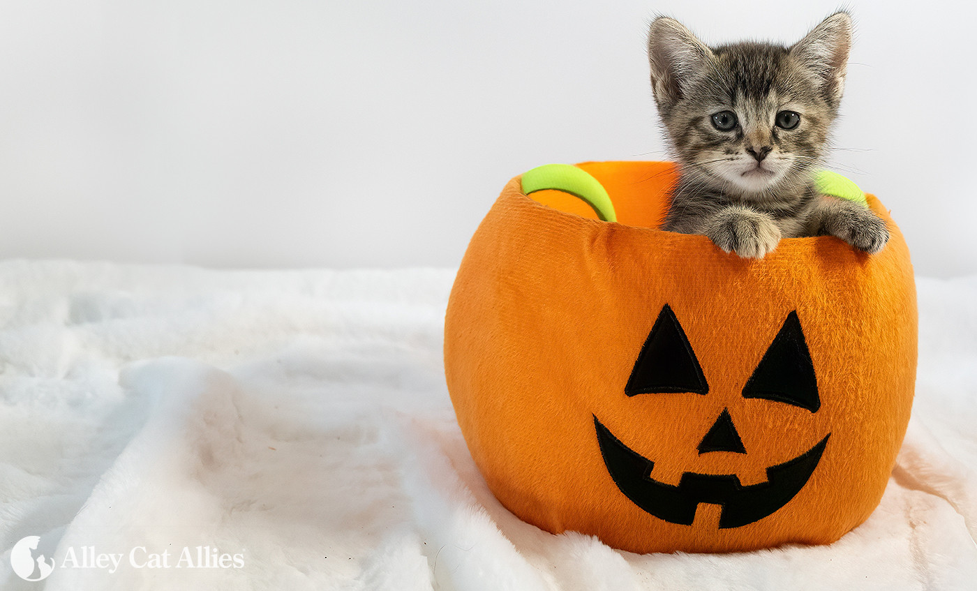 Halloween is almost here! Though the night is scary, spectacular fun for us, it can be just plain scary for the cats, kittens, and other animals in our lives. Alley Cat Allies’ Halloween Safety Tips will help you ensure your feline family members and neighbors have a safe and happy night just like you!