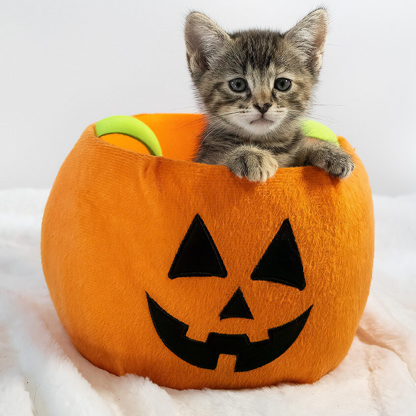 Trick-or-treating on Halloween means a lot of doors opening and closing! In the midst of the chaos, it’s possible a cat could dart out without anyone noticing. Just in case, make sure your cats and kittens are microchipped and that your microchip information is up to date. It will help you reunite with them should they become lost. Learn how microchipping saves lives.