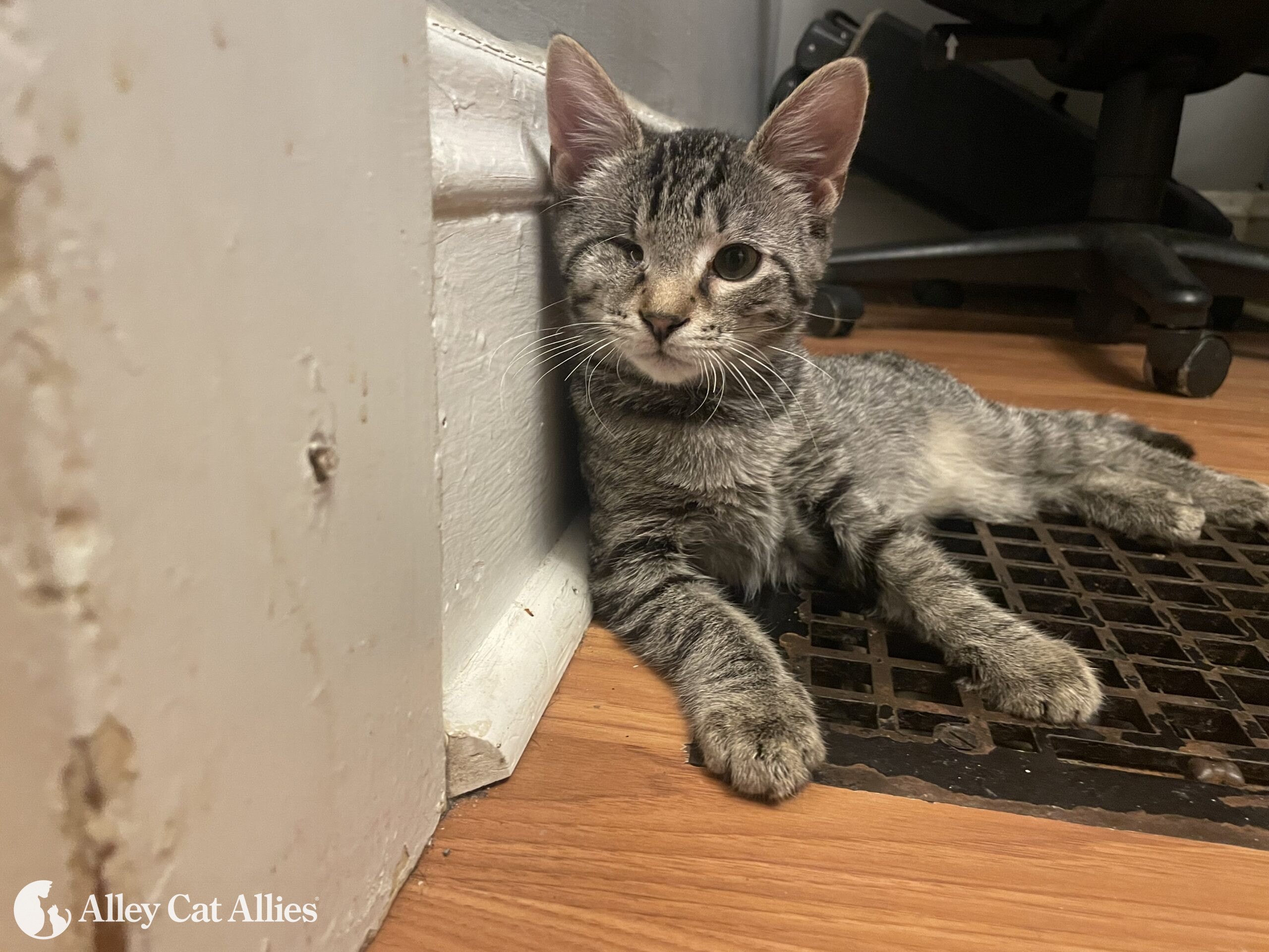 If you’ve been following Alley Cat Allies, you might remember Jet, who we rushed to emergency veterinary care after his caregiver (now adopter!) called on us for help through our Cat Help Desk. Jet’s eye couldn’t be saved, but he’s adapted smoothly–and today, he’s a cheerful, boisterous, and quirky kitten!