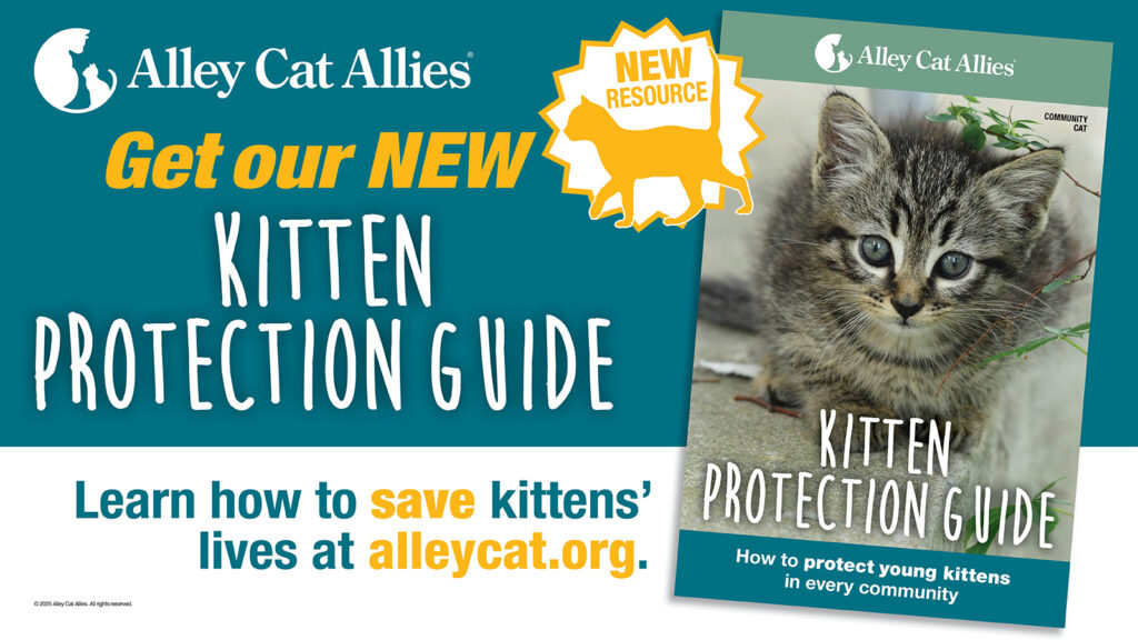Since 1990, advocates, budding kitten caregivers, shelters, and organizations worldwide have looked to Alley Cat Allies for expertise in protecting kittens and implementing humane programs and policies to protect them. Our Kitten Protection Guide reflects the standards and knowledge we’ve developed and shared in our decades of action.