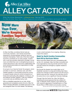 www.alleycat.org 2 | ALLEY CAT ACTION, SPRING 2025 TAKE ACTION Receive our action alerts and other emails. alleycat.org/SignUp With just a few clicks, you can make a difference in cats’ lives and help transform communities. Here are online resources to help: SAVE A CAT WITH A MOUSE DONATE Support our work with cats and kittens. alleycat.org/Donate QUESTIONS? Looking for assistance with cats? Get the help you need! alleycat.org/GetHelp LEARN Advocate for cats in your community. alleycat.org/CommunityChange (continued from page 1) costs of veterinary services including spay and neuter and vaccination. And, to meet everyday needs, we’re funding a no-cost cat food bank to help caregivers keep cats’ bowls full. “To get this funding from Alley Cat Allies so we can work with different vets every week to help these cats…we can’t even explain how important it is. People have had their lives changed [by Hurricane Helene], and going to a private vet is out of the question,” said Nancy Schneiter, director of Friends2Ferals. “The food is also fantastic because we provide food to a lot of people who are willing to care for the animals and love the animals, but can’t afford the expense.” Georgia Cats Receive Critical Care Down in Georgia, Alley Cat Allies’ work with the veterinarians at Community Cat Clinic in Duluth began at just the right time for three cat siblings. Still working through Hurricane Helene flood damage to their home, the family of Mew, Rowdy, and Ceviche struggled to afford complex emergency treatment for their cats. Cats Are Family Too took that burden off their hands, and covered costs of all three cats’ care. Rowdy, who is so sweet that she melted immediately in the hands of her veterinarians, needed emergency surgery as well as bloodwork, pain management, and more. Ceviche, who came in to be spayed, was discovered to have swollen lymph nodes and anemia. Her surgery had to be put off for further treatment, but took place a few weeks later. Mew just needed neuter surgery and vaccination—and got it right away! “All three kitties are doing well and have a much better outlook now, thanks to Alley Cat Allies,” said Rick DuCharme, managing partner of the Community Cat Clinic. “Your assistance with this family made a world of difference for them, and has a positive impact on our team as well!” Year 25 of Saving Lives in Atlantic County, New Jersey Alley Cat Allies has been on the ground in the county for a quarter of a century, and we’re still finding new and exciting ways to save cats’ lives. Our ongoing TNR and community cat food bank program with the Humane Society of Atlantic County (HSAC) is just our most recent initiative in the area—and has already reached thousands of cats in the span of a couple years! Multiple times a week, cats like Thadius, Chadwick, and Bear are spayed or neutered, vaccinated, and Now More Than Ever, We’re Keeping Families Together (continued on next page) ROWDY CEVICHE MEW THADIUS
