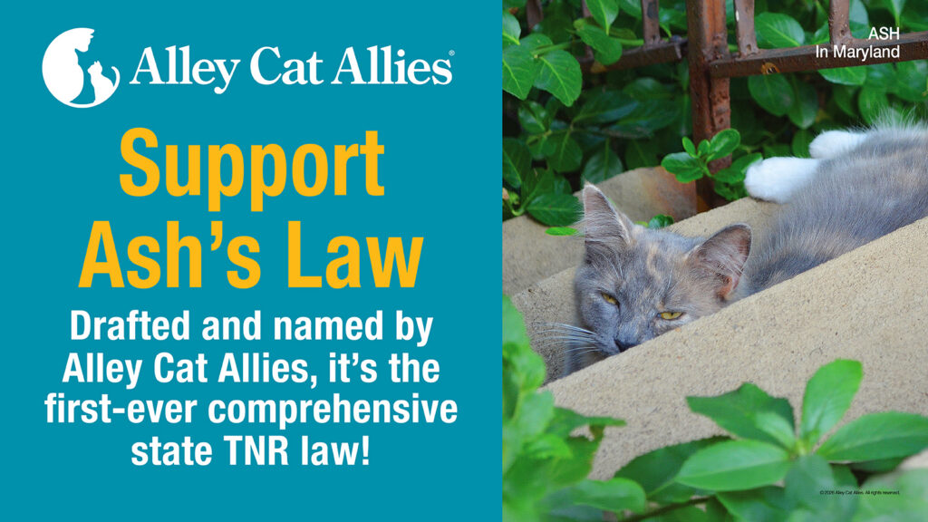 This is our chance to make HISTORY for cats! Alley Cat Allies drafted, named, and is championing Ash’s Law—the first-ever comprehensive statewide law protecting Trap-Neuter-Return (TNR) and community cats.