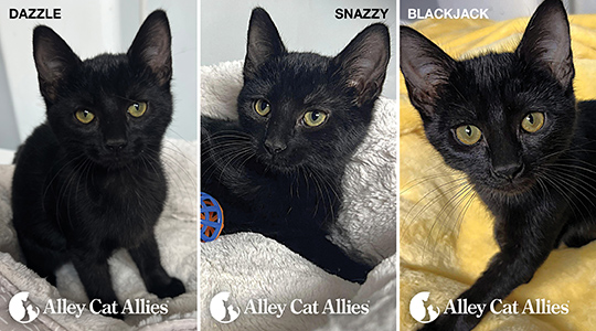 Learn how to adopt Dazzle, Snazzy, or Blackjack at alleycat.org/Adopt.