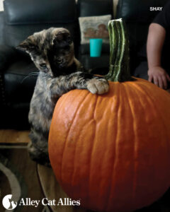 If you’ve been following us, you might be familiar with Shay’s story. When a police station called Alley Cat Allies about kittens stuck on their rooftop, including Shay, we acted fast with first responders to save their lives.