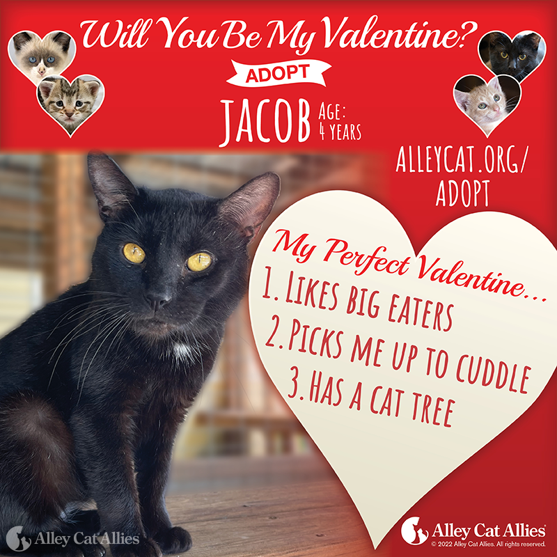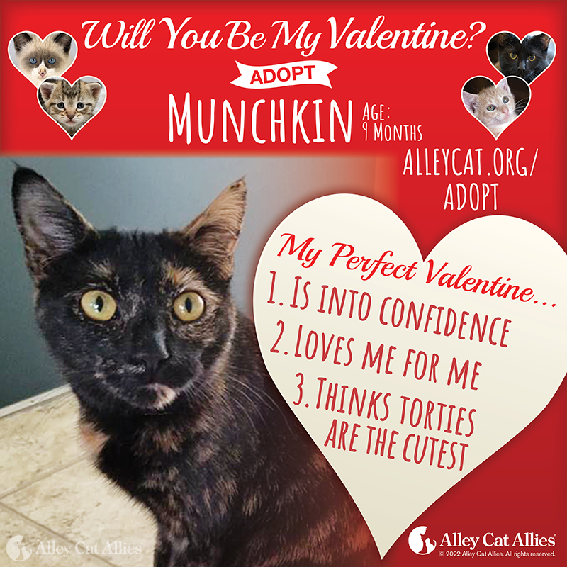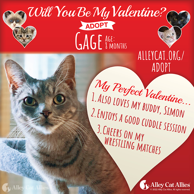 This year, we have some very special animals waiting to find their perfect Valentine. Rather than flowers or candy, they’re hoping to be adopted by a family who will give them all the love they deserve! Meet them all and learn how you can take them home at alleycat.org/Adopt.